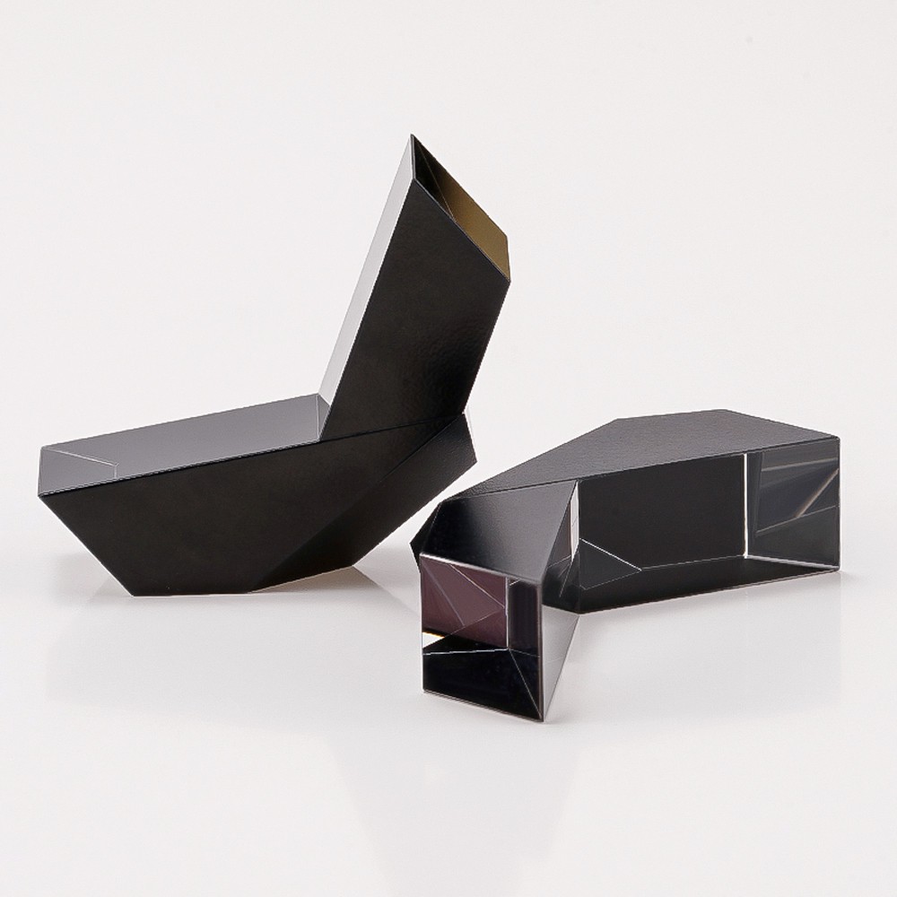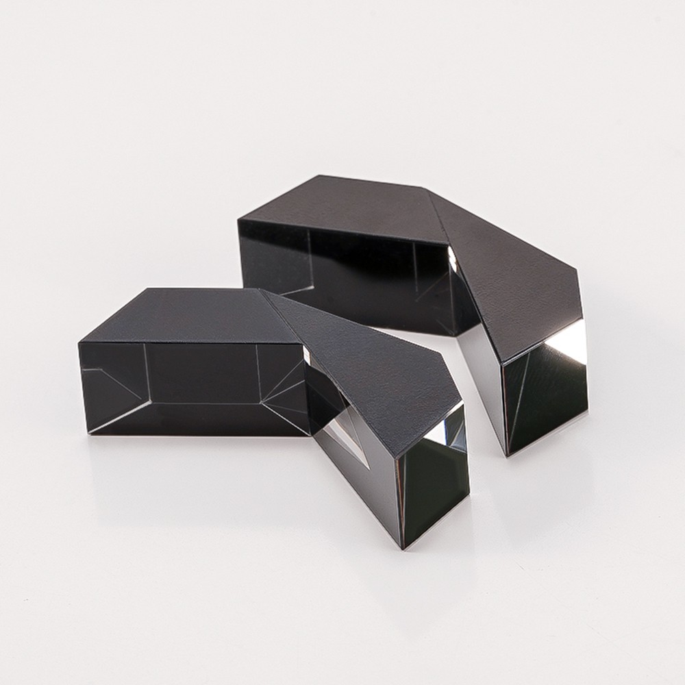 產(chǎn)品介紹:該棱鏡是由兩個(gè)光學(xué)棱鏡膠合在一起的,形成一個(gè)V形組件。光線(xiàn)以垂直入射的方式進(jìn)入棱鏡的一個(gè)面,從一個(gè)30”的傾料面內(nèi)反射,然后從棱鏡底部的“屋頂”部分(由兩個(gè)以90°角相交的面組成)反射。然后光從對(duì)面的30”面反射出去,再次以正入射的方式射出。內(nèi)部反射效果是垂直和水平翻轉(zhuǎn)圖像。這產(chǎn)生了180”的圖像旋轉(zhuǎn)(不改變圖像的旋向),并允許使用棱鏡作為圖像豎立系統(tǒng)。