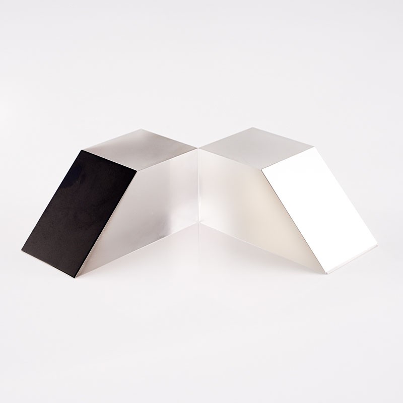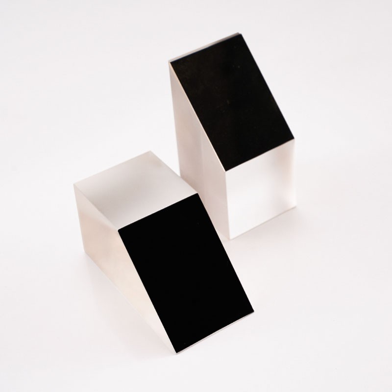 半五角棱鏡是一種特殊的光學(xué)元件,它的結(jié)構(gòu)特點(diǎn)是由五棱鏡對切而成,是光束定角度(通常為45°)轉(zhuǎn)向器件。半五角棱鏡具有許多優(yōu)點(diǎn),在應(yīng)用中,半五角棱鏡常被用于望遠(yuǎn)鏡等系統(tǒng)中,使光束實(shí)現(xiàn)固定的45°轉(zhuǎn)折。半五角棱鏡的反射面通常鍍有鋁膜,并加以黑漆保護(hù),而其入射面和出射面則鍍有MgF2(氟化鎂)增透膜,以增強(qiáng)其光學(xué)性能。